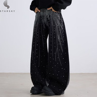 Quần Jean Nam Thiết Kế Mới Phong Cách Retro Đường Phố, Kiểu Ngôi Sao Năm Cánh, Dáng Suông Rộng, Trang Trí Đá Lấp Lánh